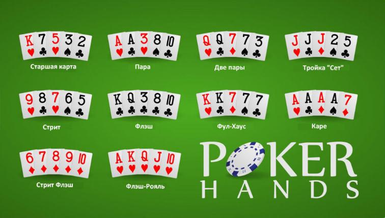 Комбинации в Оазис Покере бывают 11 видов, одна из них «пустая» (то есть не соответствует ни одной из других комбинаций), а все остальные «значащие».