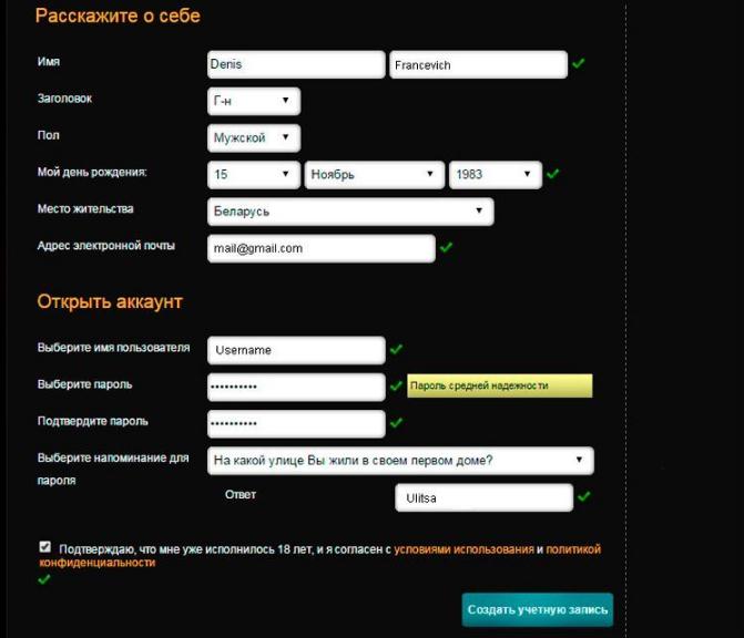 После заполнения всех необходимых полей нажмите «Создать учетную запись», после чего Вы можете переходить к следующему шагу.