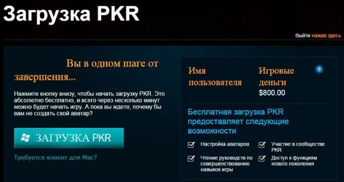После создания учетной записи Вы сможете легко и абсолютно бесплатно скачать клиент PkrPoker. Для этого нажмите «Загрузка PKR» на официальном сайте покер-рума.