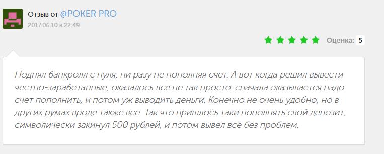Чтобы не быть голословными, мы приводим реальные отзывы реальных людей. Чаще всего игроки RuPoker отмечают следующие нюансы вывода денег с РуПокер: