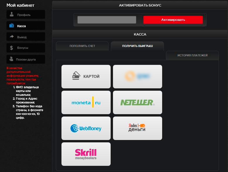 В случае, если игрок запросит на вывод сумму, превышающую указанные ограничения, то она будет разделена на несколько частей и выплачена постепенно.