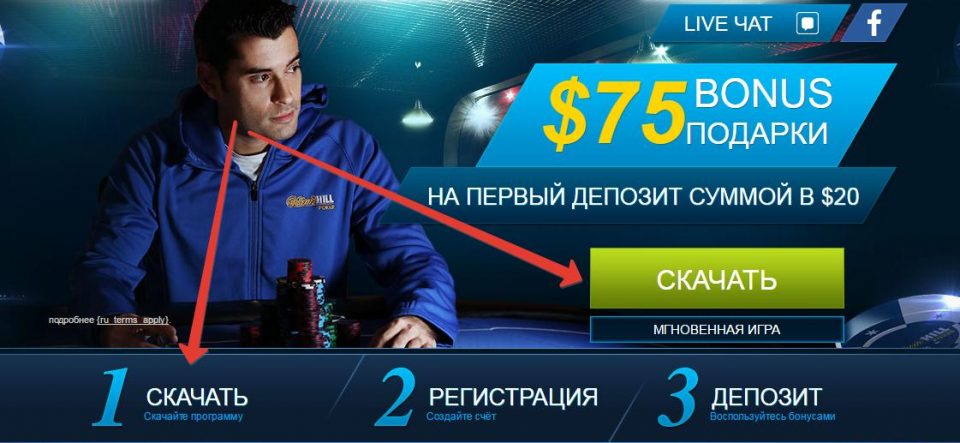 Если у Вас еще нет аккаунта на William Hill Poker, Вам необходимо пройти регистрацию. После ее завершения Вы сможете приступить к загрузке и установке программного обеспечения либо начать игру прямо в браузере.